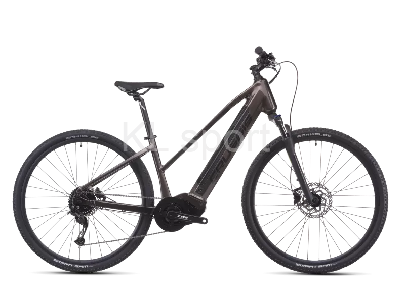 CRUSSIS ONE-Cross low 7.11: Efektivní pohyb přes pole i louky S modelem ONE-Cross low 7.11-(691 Wh) získáte elektrokolo, které kombinuje pohodlný nástup, stabilní jízdní vlastnosti a spolehlivou výbavu. Díky nízkému rámu je manipulace s kolem snadná i v hustším provozu nebo při častém nasedání a sesedání. O asistenci při šlapání se stará středový motor PANASONIC GX Power Plus s točivým momentem 75 Nm, který oceníte jak na rovině, tak při jízdě do kopce. Energii dodává baterie LG Li-Ion 691 Wh (19,2 Ah) – ta zvládne poskytnout dojezd až 170 km v závislosti na podmínkách a zvoleném režimu. Kolo je osazeno vidlicí SUNTOUR NEX HLO DS 700c s možností uzamčení, která efektivně tlumí nerovnosti, a plášti SCHWALBE Smart Sam, jež obstojí na cyklostezkách i zpevněných lesních cestách. Hydraulické brzdy SHIMANO BR-MT200 přinášejí spolehlivé brzdné vlastnosti ve všech situacích. Plynulé řazení zajišťuje devítirychlostní přehazovačka SHIMANO Alivio, a aktuální data o jízdě i výkonu najdete na přehledném barevném LCD displeji PANASONIC. ONE-Cross low 7.11-(691 Wh) je ideálním řešením pro ty, kdo hledají spolehlivé elektrokolo s komfortním nástupem a bohatým dojezdem pro každodenní použití i víkendové výlety.